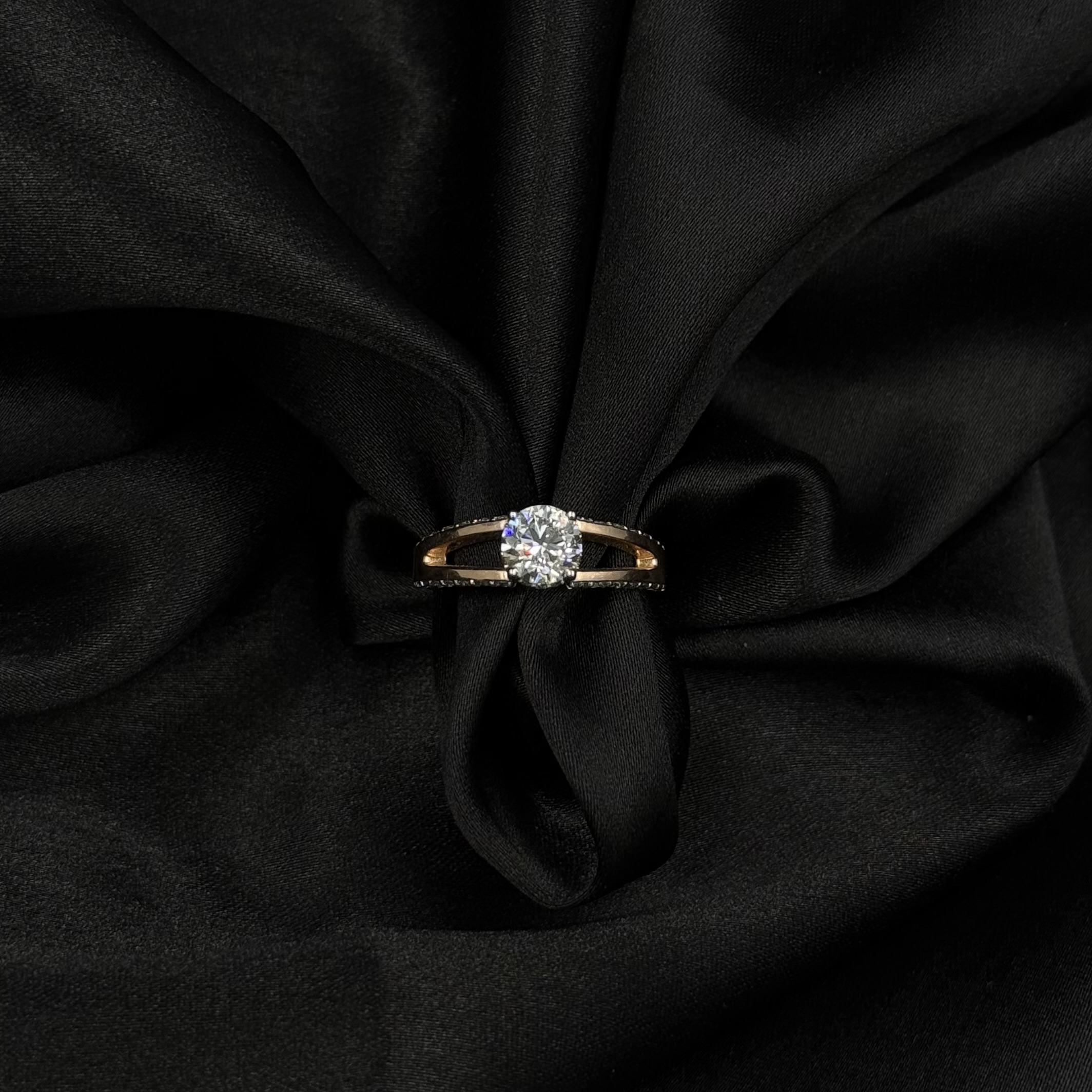A chic 14KT masterpiece featuring a radiant solitaire held in a modern split-shank design—perfect for engagements, celebrations, or elevating any occasion with timeless sparkle.